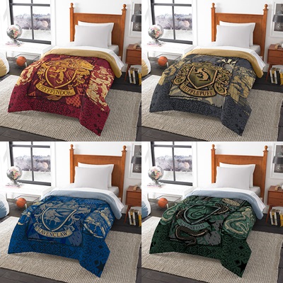 Já na loja "THINK GEEK" mais uma gringa, temos todas as casas de hogwarts! Eu adoraria um jogo de cama de duas casas, sendo elas, Grifinória e Corvinal. Seria meu sonho?
